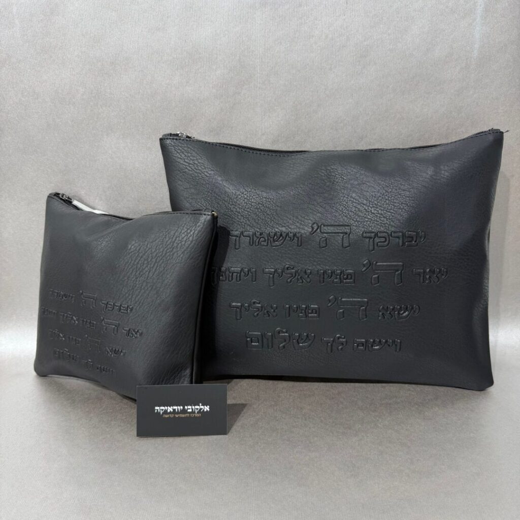 סט טלית תפילין דמוי עור שחור אותיות שקועות "יברכך"